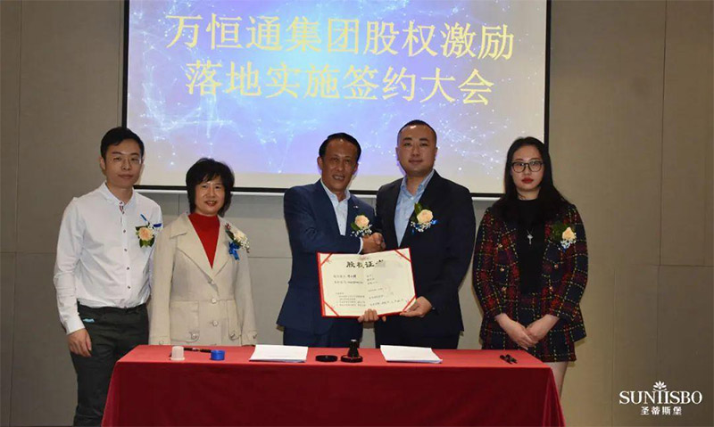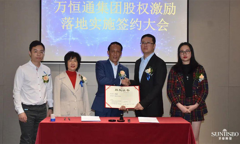 YABO鸭脖集团执行董事及法人代表王浩基先生正式为第一期六位虚拟受限股股东授予荣誉证书并签订股权分配协议。